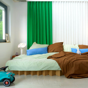 The bed’s stable diamond structure means there's no need for a slatted base, while still allowing excellent mattress ventilation without sacrificing comfort. Made from high-quality, heavy-duty corrugated cardboard, the Family Bed 2.0 LOW is both sturdy and durable. It can hold up to four people, each weighing up to 100 kg. Our AVANA corrugated cardboard is made with 54 to 80% recycled material, fully recyclable and the adhesives used are plant-based, made from corn starch. When the bed reaches the end of its life cycle, it can easily be recycled through your paper bin.