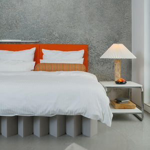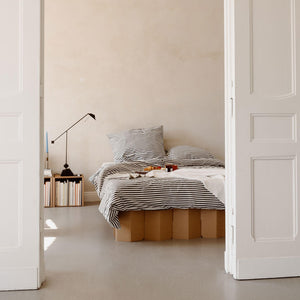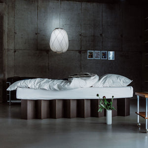 Pre-assembled for common mattress sizes from small single to super king, our Bed 2.0 offers the flexibility for customization to other sizes with a simple conversion. Designed to negate the need for an additional slatted frame, it ensures optimal mattress comfort and sufficient air circulation with its open rhombic structure (more information in our magazine article).