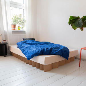 Constructed from high-quality, heavy-duty cardboard, the Bed 2.0 LOW is not only durable but also eco-friendly. The corrugated cardboard contains 54–80% recycled content and is fully recyclable. The use of maize starch-based adhesives makes it even more sustainable. When it reaches the end of its life, you can easily recycle it through your paper recycling bin.